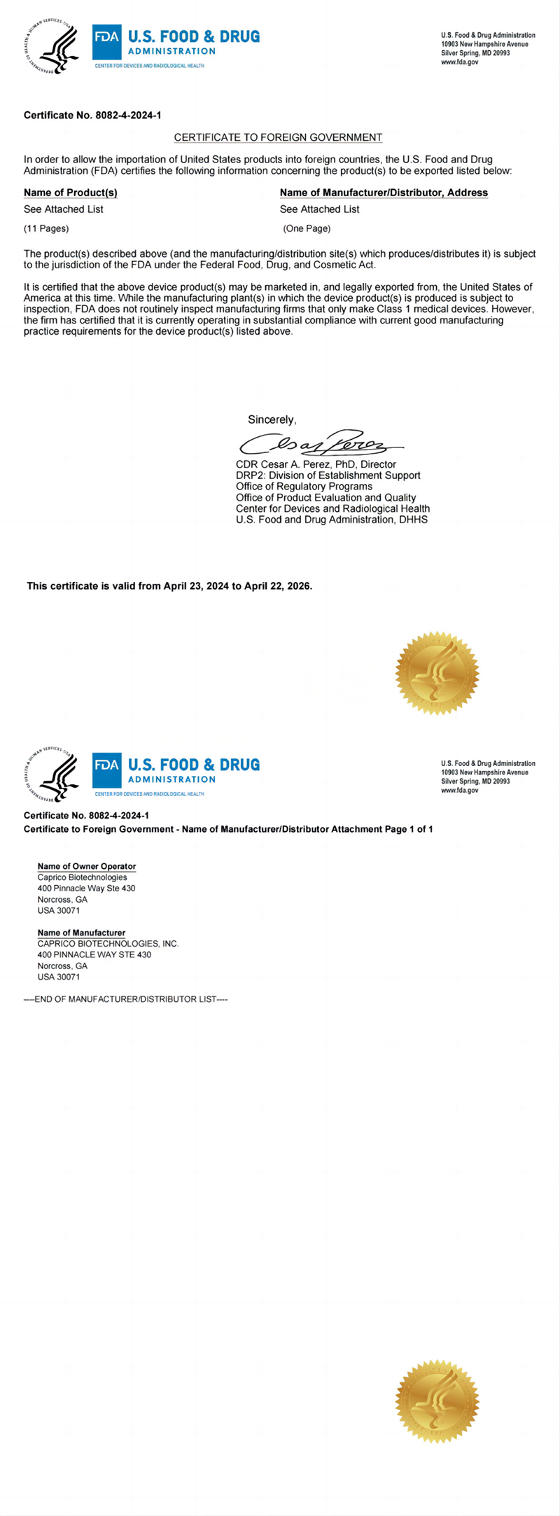 近日,凯普瑞生物美国全资子公司Caprico Biotechnologies,Inc.迎接了FDA的新一轮认定,凯普瑞产品通过FDA认证,并取得FDA认证证书。凯普瑞产品早在2018年已在FDA进行认证,此次认证是第三次通过审核,这是对凯普瑞流式试剂品质和效果的最高认可。
