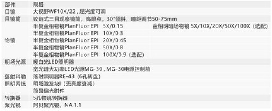 · 半复消色差金相物镜,可选明暗场物镜